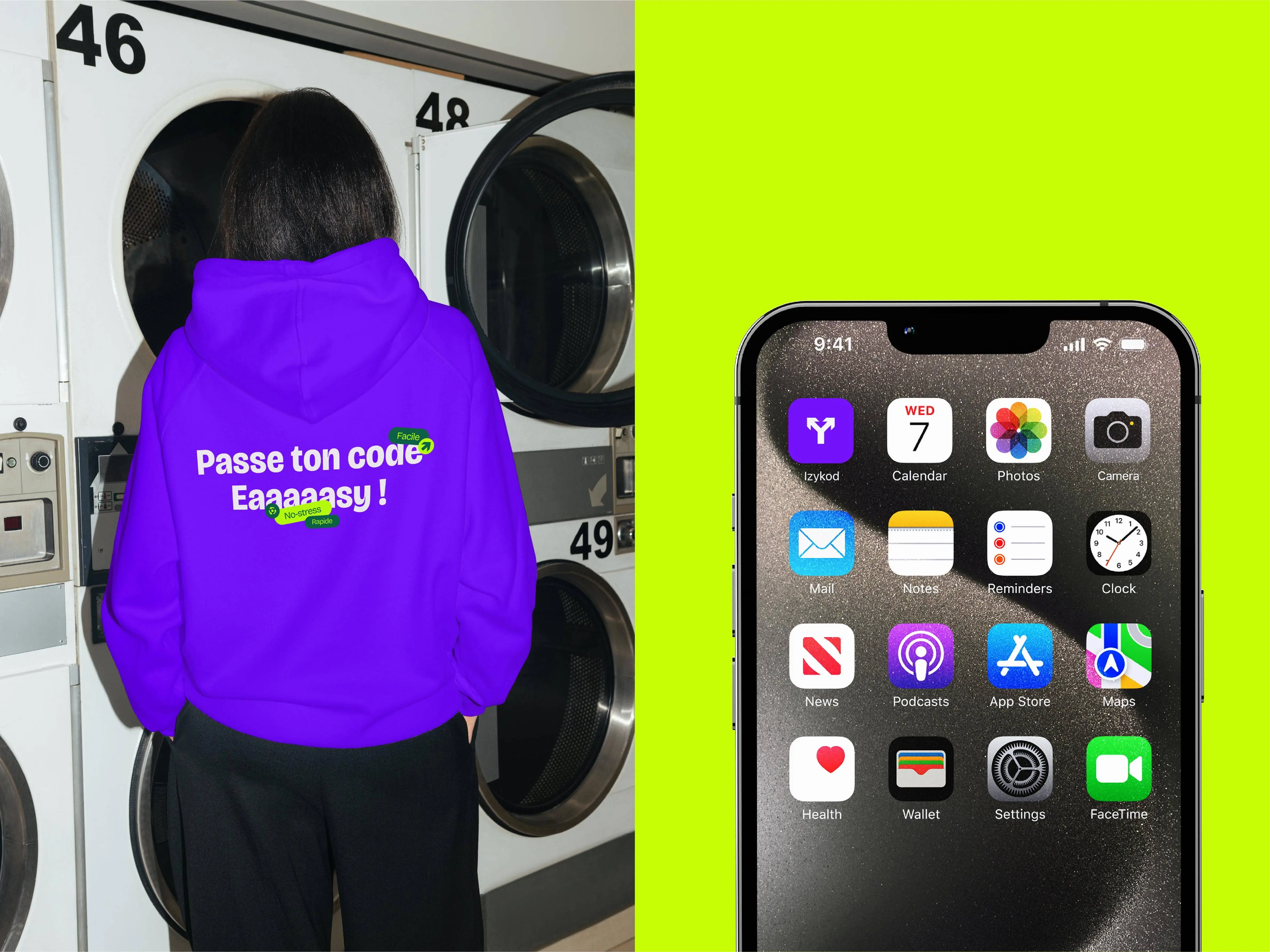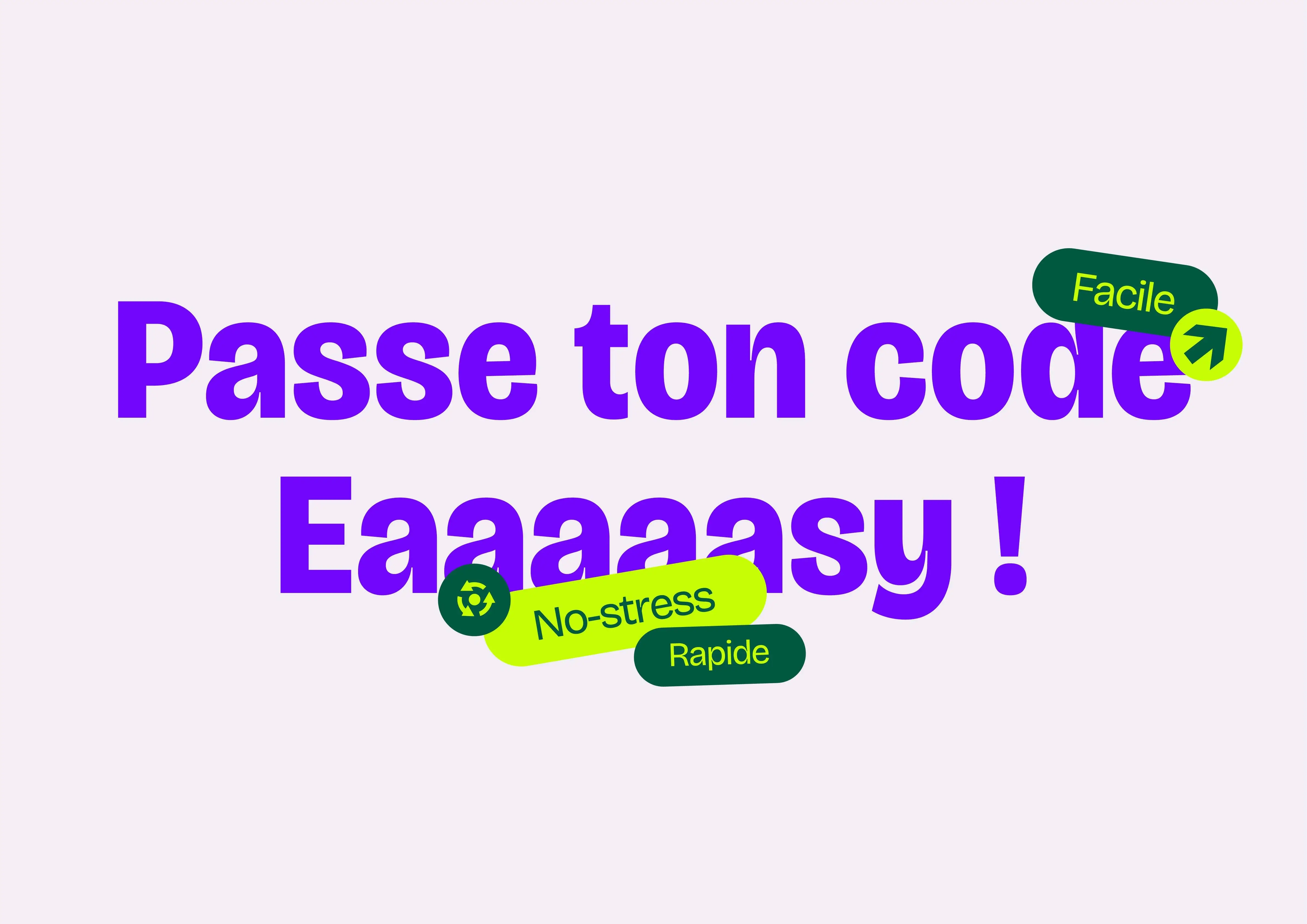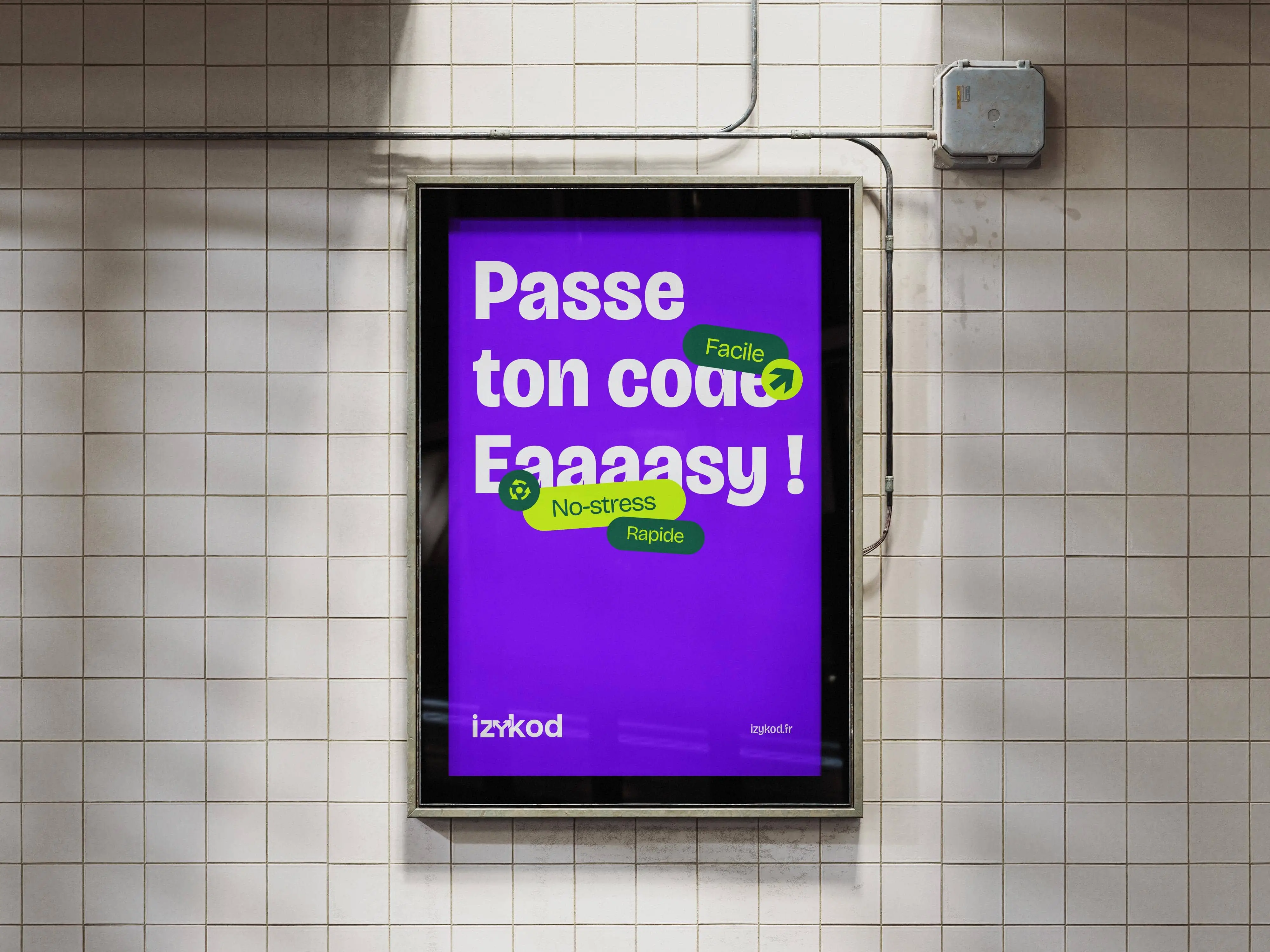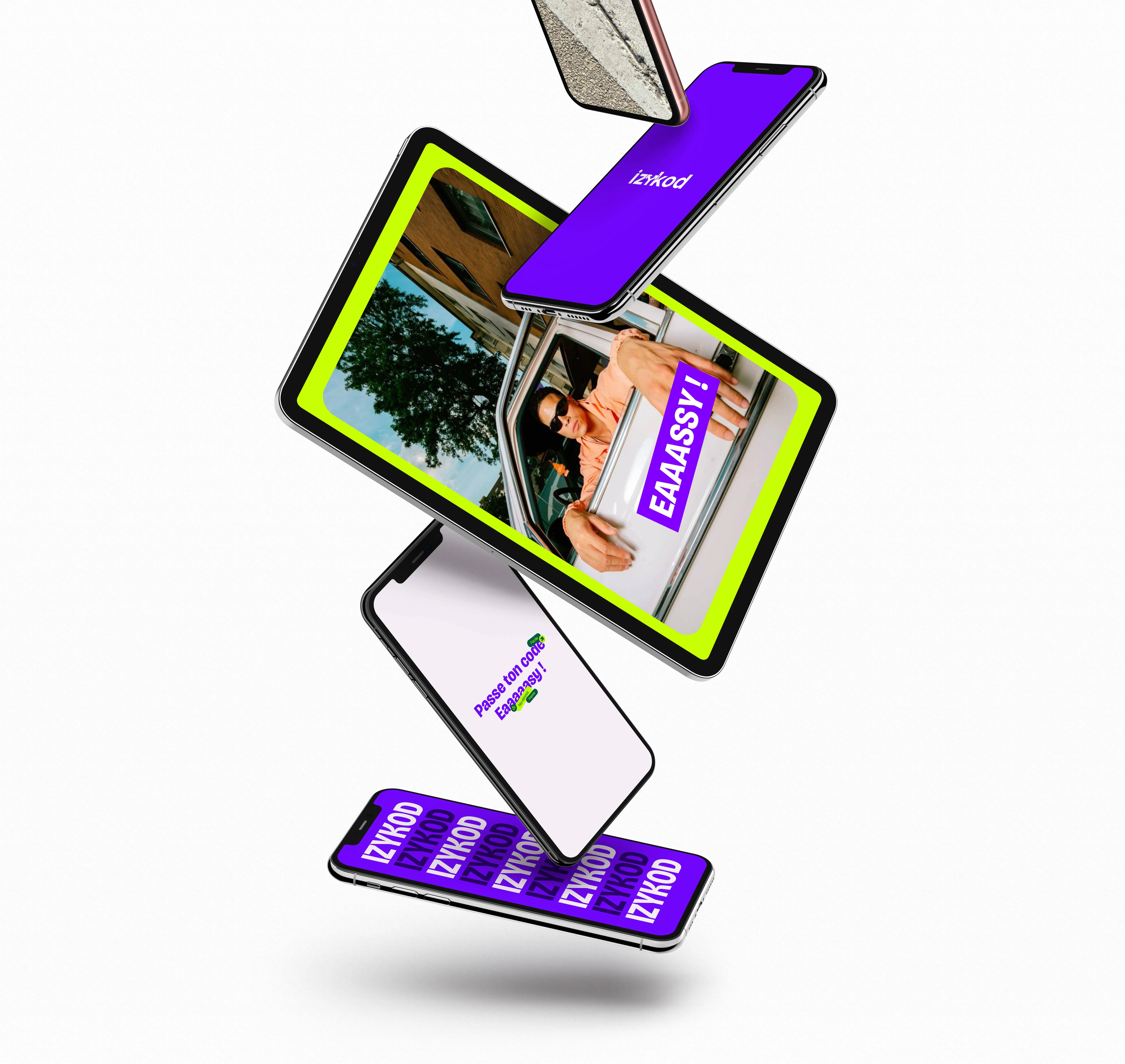 Nous avons conçu une identité énergique, ludique, claire, à l’image de la promesse d’Izykod : passer son code, facilement, en toute liberté, partout.