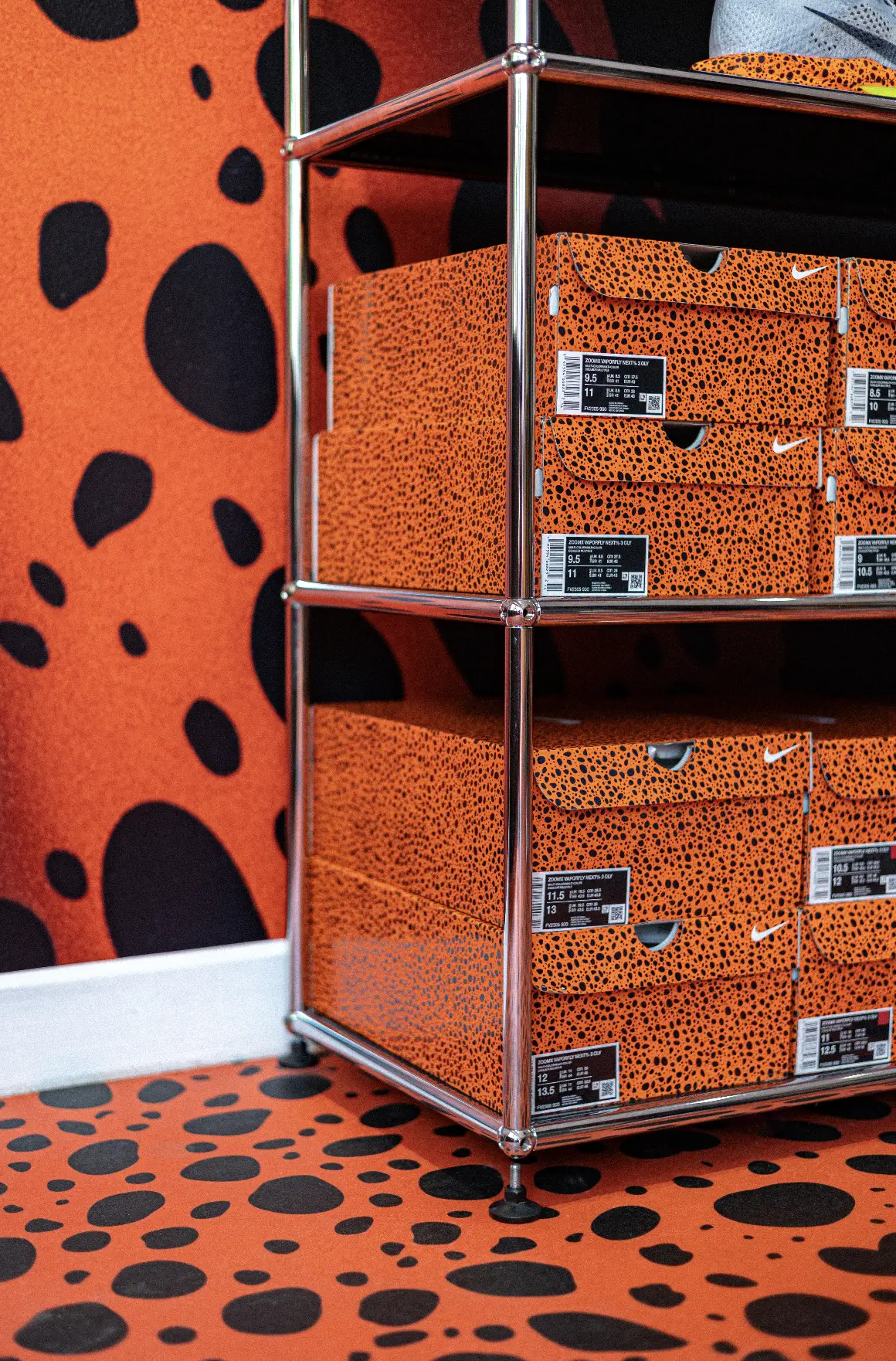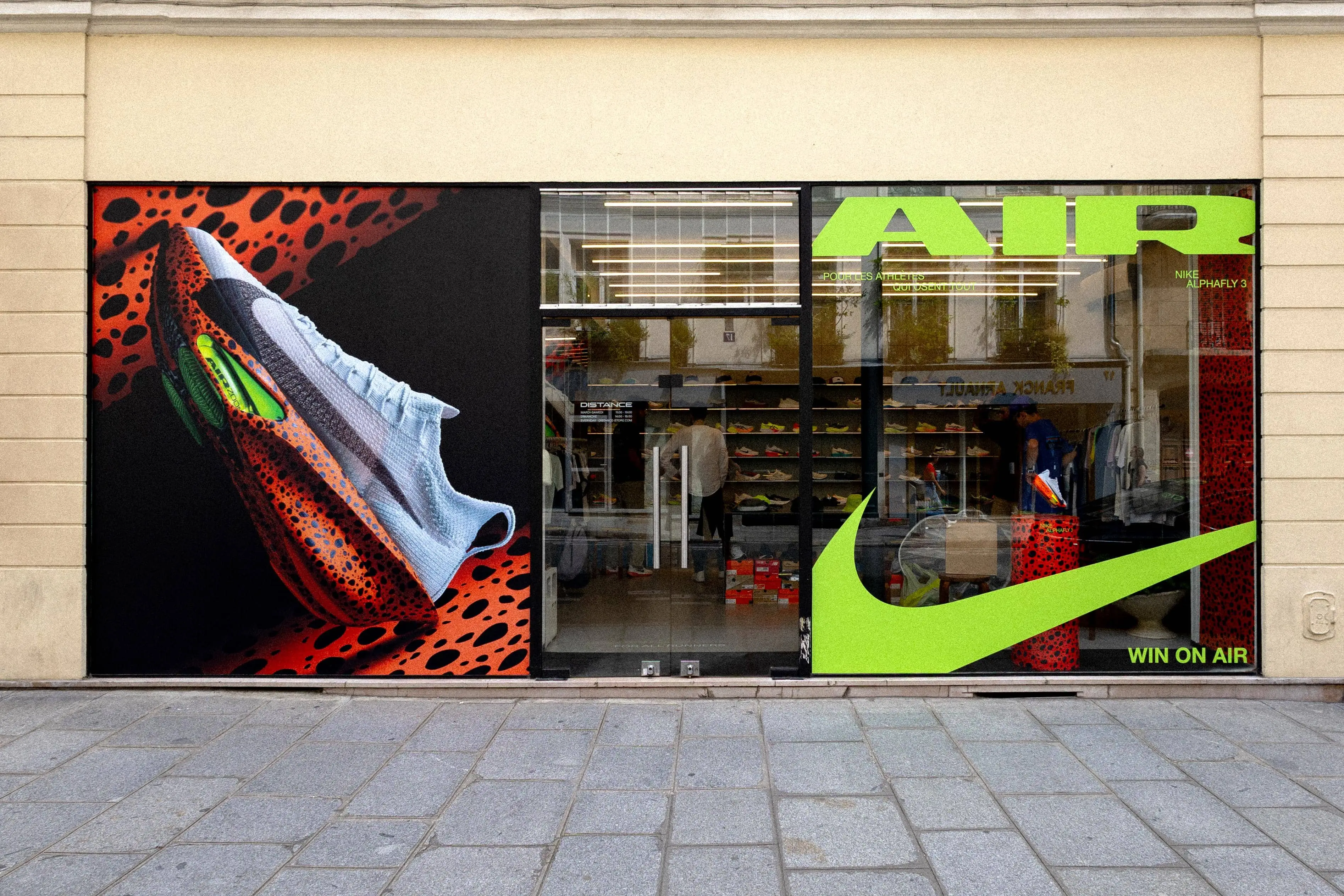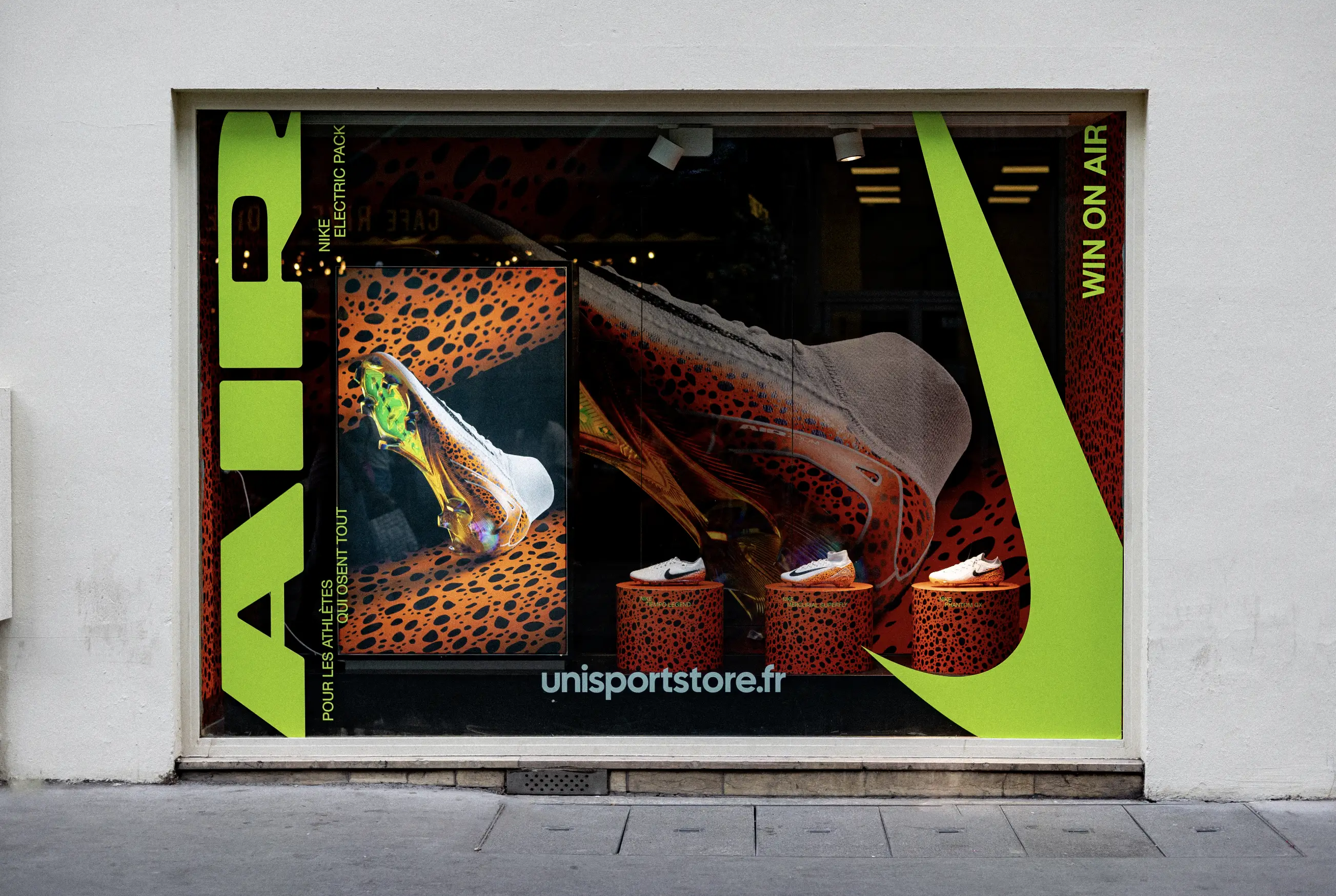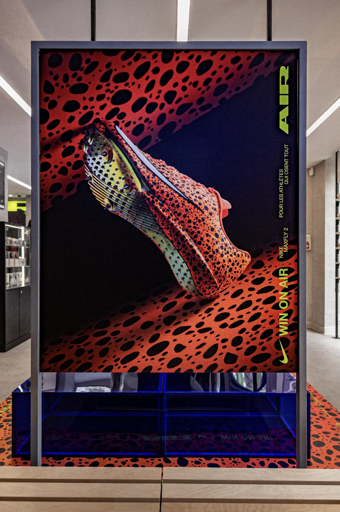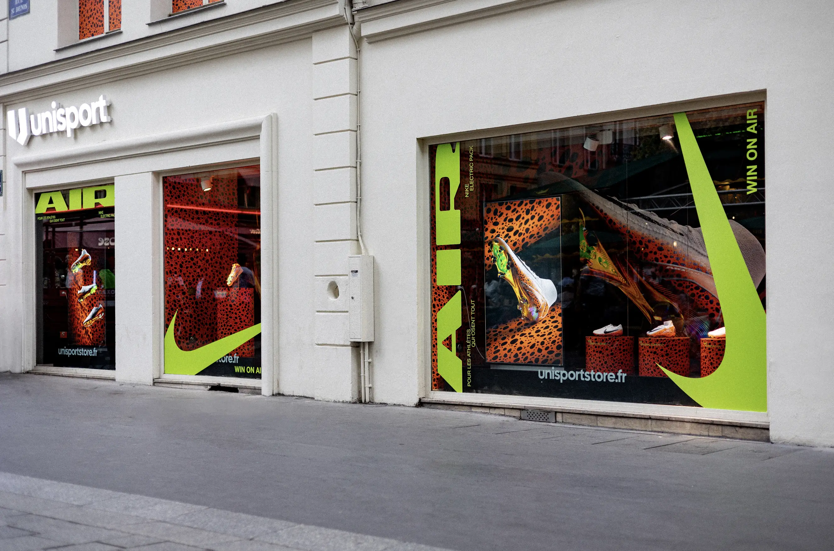 Du sol au plafond, de l’agencement intérieur aux façades extérieures, tout a été repensé aux couleurs de la campagne Nike.