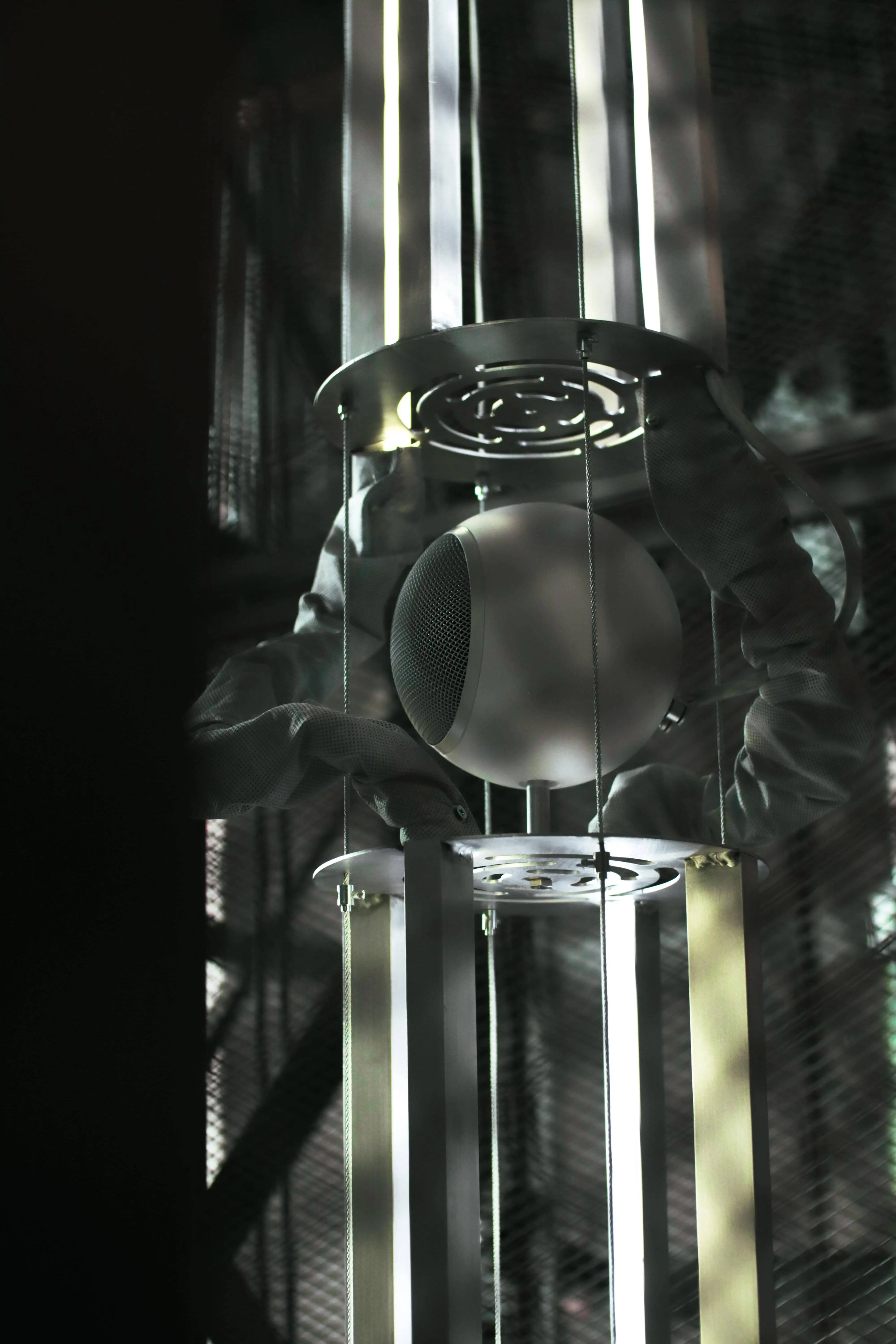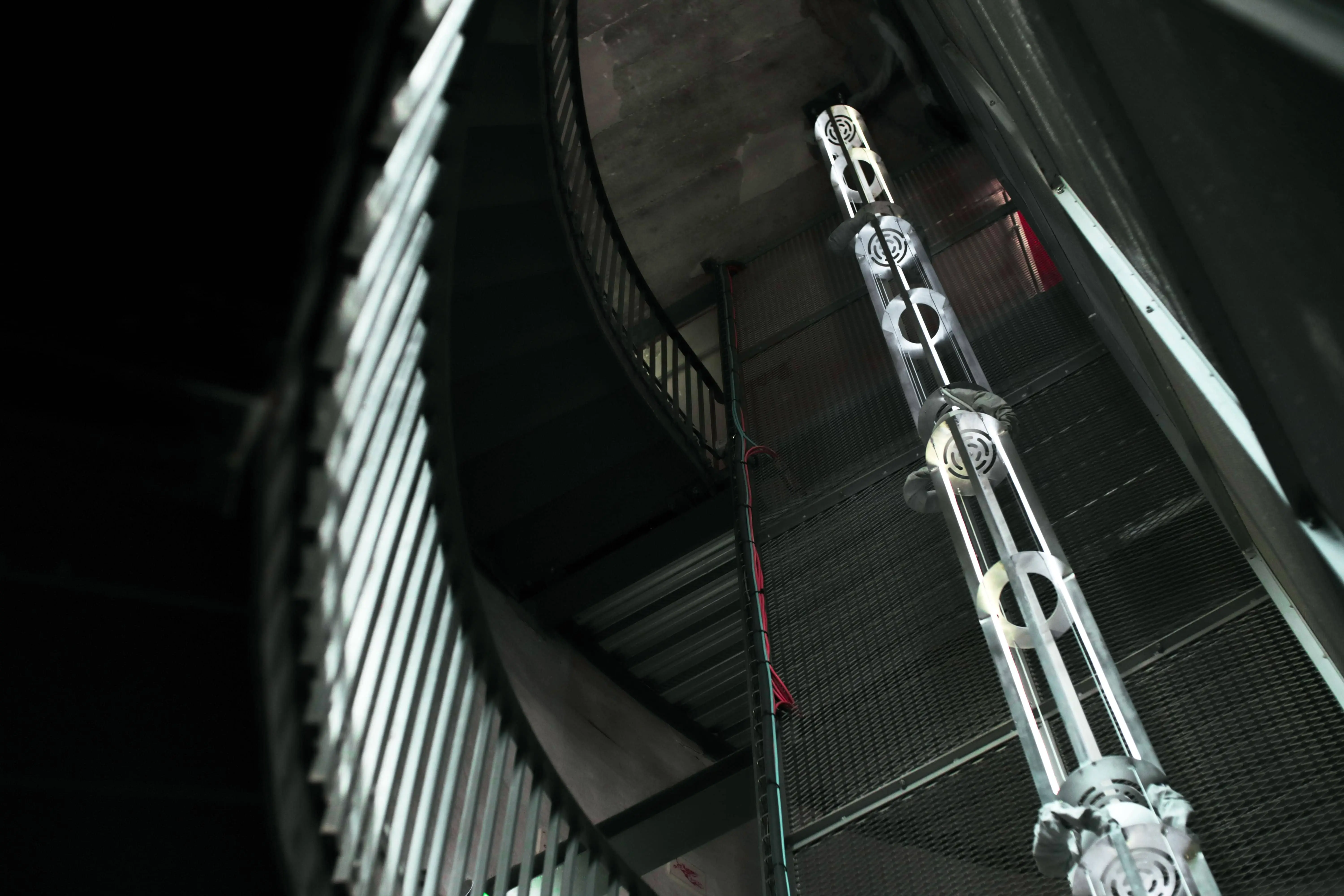 Le projet se compose de deux luminaires verticaux installés dans l’axe de la tour, soulignant sa hauteur et structurant l’espace en un lieu de contemplation. Ces sculptures lumineuses intègrent un système de huit enceintes, diffusant une composition sonore générative en temps réel.